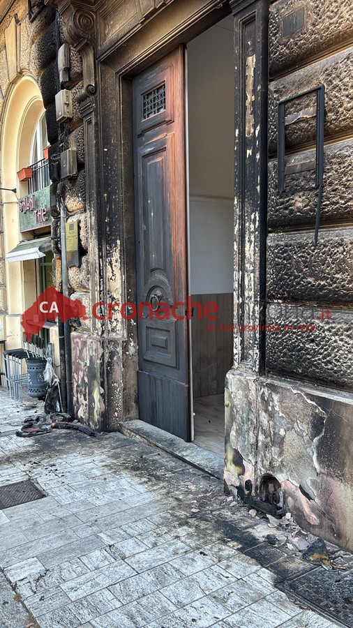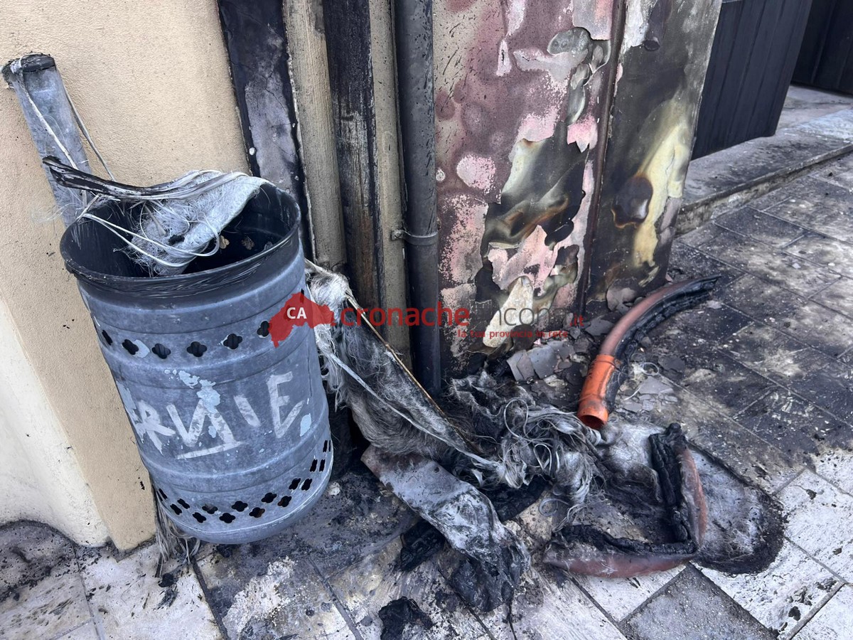 Le fiamme hanno divorato il battente in legno dell’edificio, diffondendosi anche lateralmente.