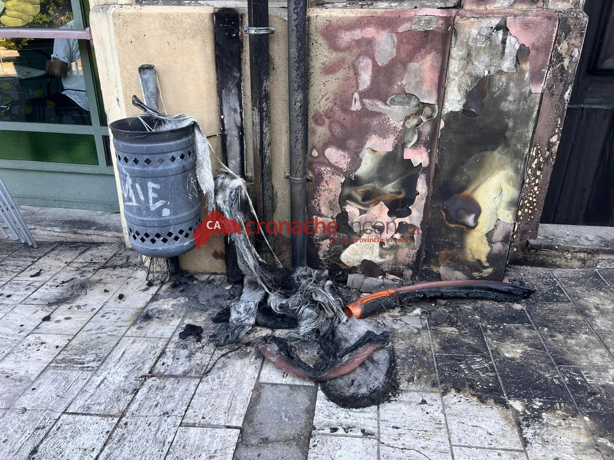 Un incendio è divampato questa mattina davanti a un portone in piazza Cavour ad Ancona.