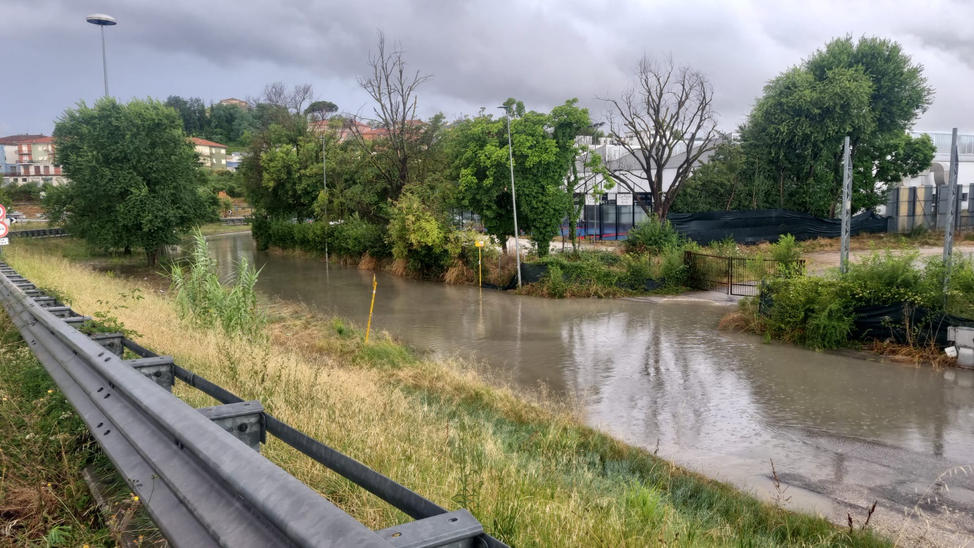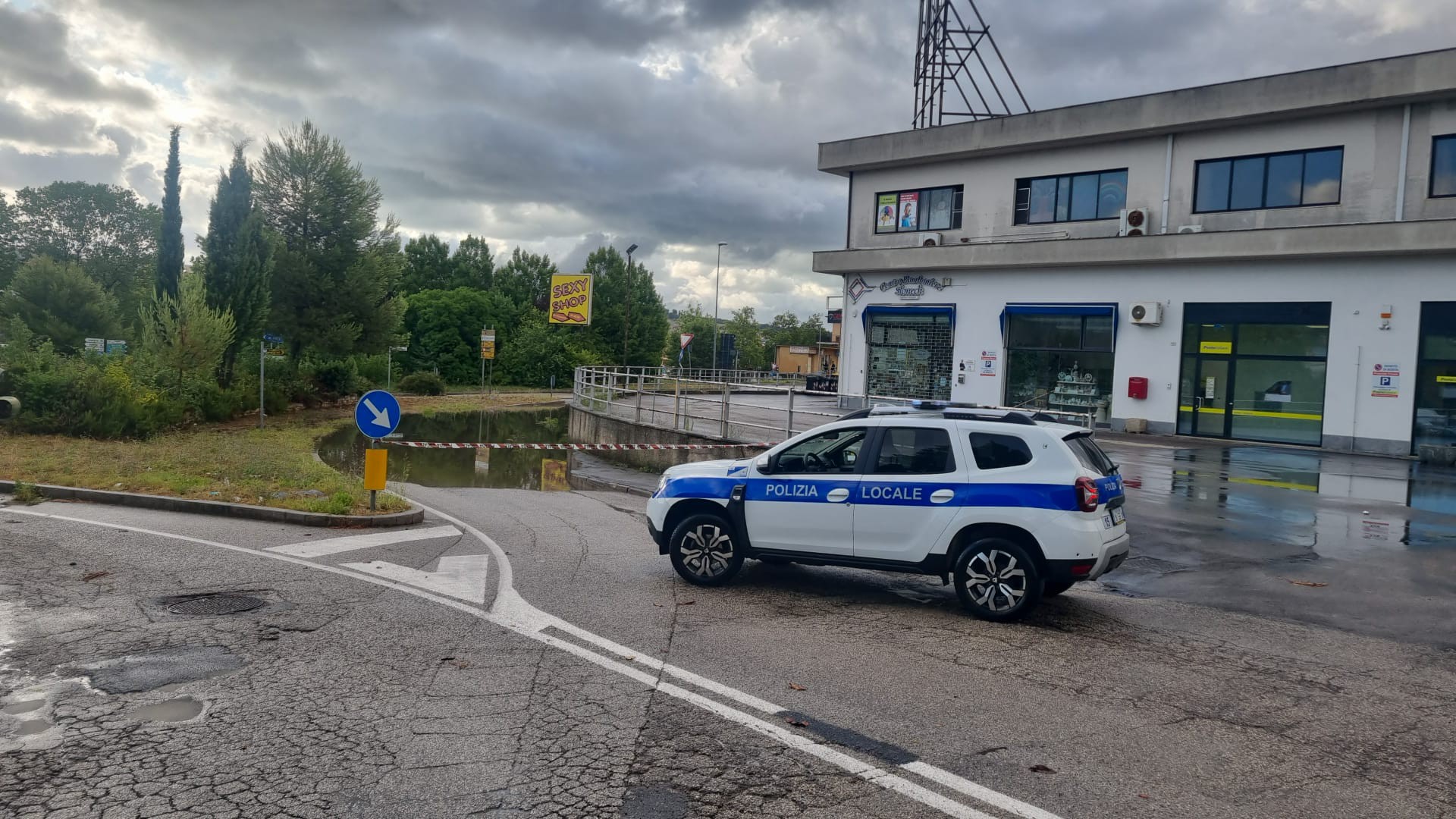 Allagamenti nella notte a seguito del nubifragio abbattutosi in città che ha costretto la polizia locale a chiudere il sottopasso di via Macerata e di via Caduti del Lavoro, oltre che a bloccare la circolazione in via Pastore.