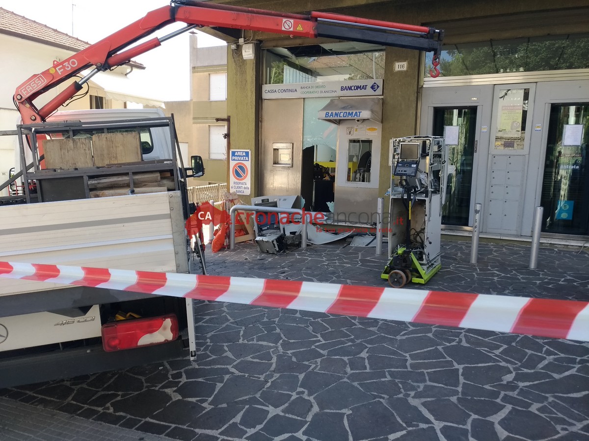 Colpo nella notte, intorno alle 3.40, alla filiale della Bcc di via Maggini, nel quartiere del Pinocchio, ad Ancona.