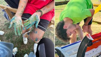 Nella seconda settimana, le squadre si sono spostate alla scuola dell’infanzia, dove il lavoro si è concentrato sugli ambienti dedicati ai più piccoli. I ragazzi hanno dato una rinfrescata ai muri interni, ridipingendoli con cura e restituendo agli spazi un aspetto più luminoso, ordinato e accogliente. Nel giardino esterno, poi, hanno sistemato tutti i giochi: li hanno puliti, controllati, rimessi in sicurezza, contribuendo così al benessere quotidiano dei bambini. E per concludere in bellezza, quattro panchine sono state dipinte con i colori dell’arcobaleno: un gesto semplice, ma potente, che parla di allegria, inclusione e speranza.