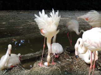 Nel frattempo, tra le torri di fango modellate con il becco, due uova di fenicottero si sono schiuse dopo circa un mese di cova condivisa da entrambi i genitori. I due pulli, ricoperti da un soffice piumaggio grigio, hanno già lasciato il nido e cominciano a esplorare il loro ambiente. La loro tipica colorazione rosa arriverà solo intorno ai quattro anni, grazie ai pigmenti contenuti nella dieta.