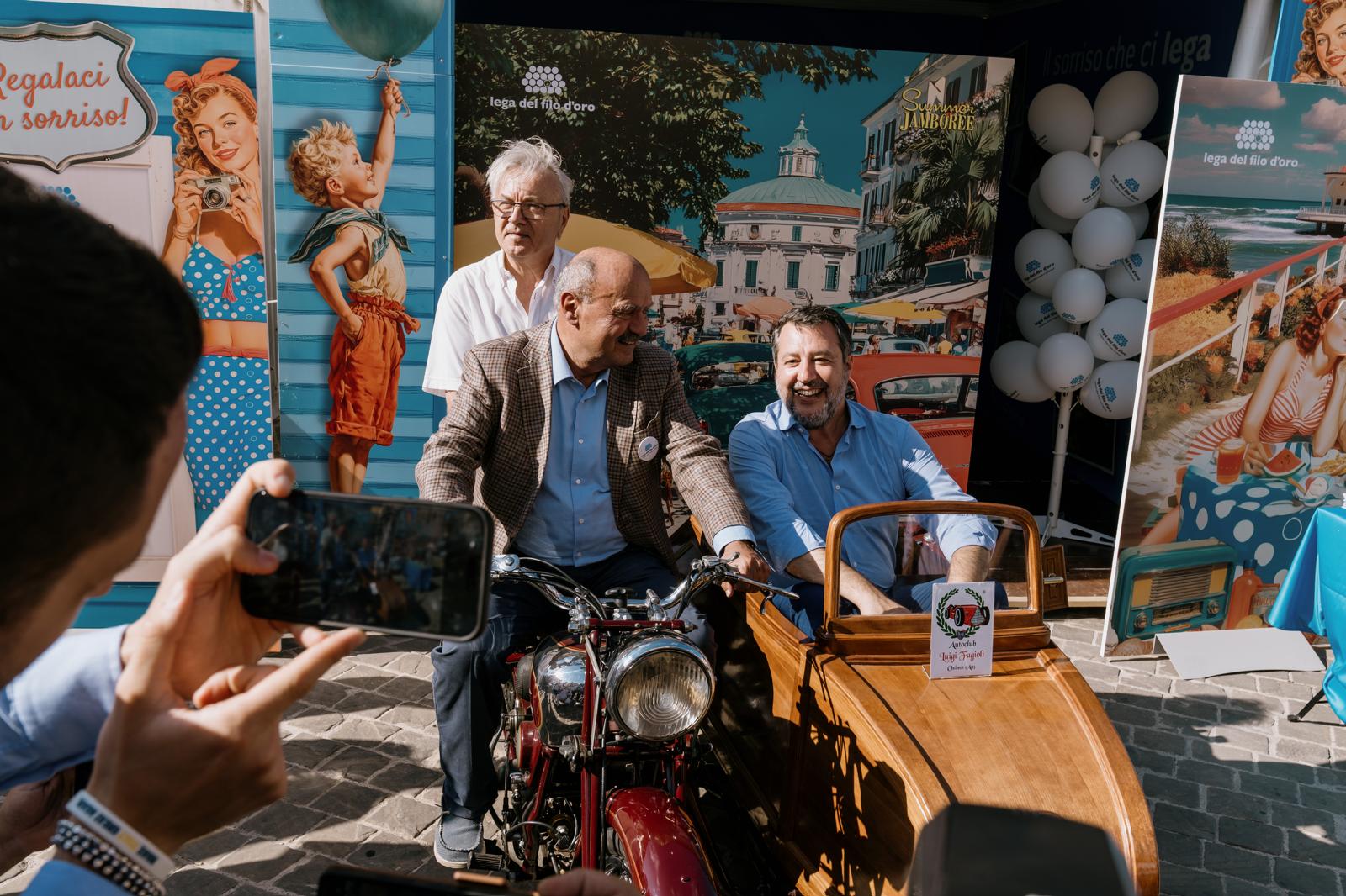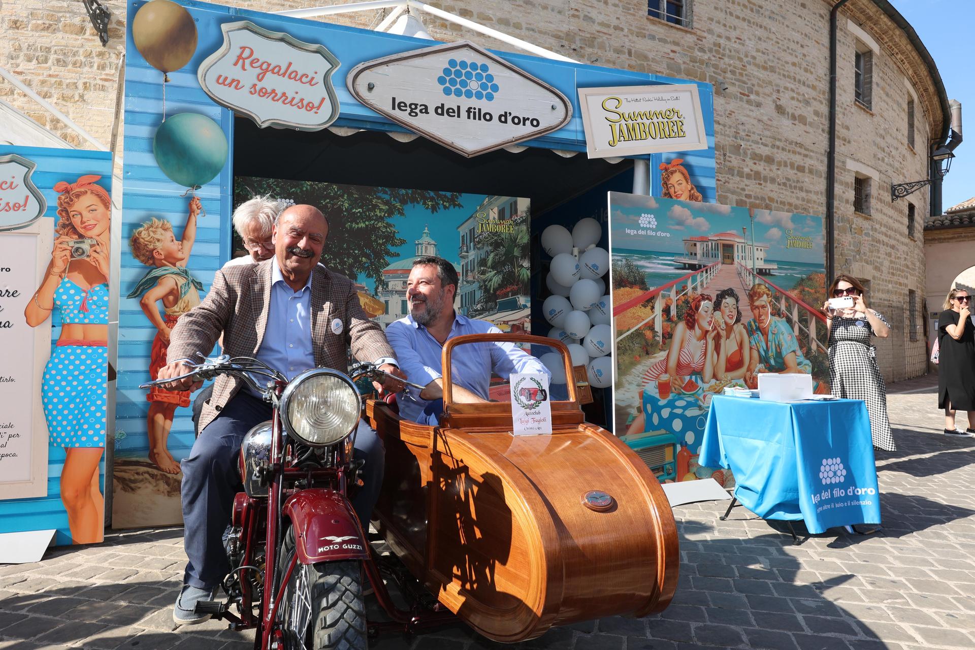 Oltre agli occhiali, Salvini ha mostrato curiosità per le borse artigianali realizzate a Roma, i foulard colorati in seta prodotti a Como e i cappelli baker boy confezionati nelle Marche. La cura dei dettagli e l’impegno nel valorizzare il Made in Italy emergono anche in questo spazio, che rappresenta una porta d’accesso simbolica al Festival. A seguire, si è recato presso lo stand della Fondazione Lega del Filo d’Oro, partner etico storico del Festival, dove ha incontrato il presidente Rossano Bartoli e il team della Fondazione scattando qualche foto in un Sidecar d’epoca. Il tour è poi proseguito tra le aree centrali del Festival, con tappe in Piazza del Duca con tutti gli espositori pronti all’inizio del Festival soffermandosi sul Vintage al Barber Shop e proseguendo poi alla Rocca Roveresca, dove sull’Hera Stage stavano iniziando il soud check per il concerto della sera. In questo contesto ha anche assaggiato il signature cocktail 2025 a base di Amaro Canaja prodotto a Senigallia, partecipando alla sua preparazione. La visita si è conclusa in Piazza Simoncelli con un’esibizione del Fearless Devid Motordrome, l’ultimo e unico motordrome ancora funzionante in Italia, in cui moto Indian originali del 1926 sfrecciano a tutta velocità all’interno di una gigantesca struttura in legno. Uno spettacolo emozionante che ha entusiasmato il vicepresidente.