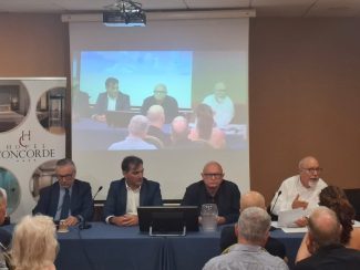 L’ultima assemblea del Comitato Alluvione Marche all’Hotel Concorde di Camerano. Andrea Pesaresi è il primo da sinistra