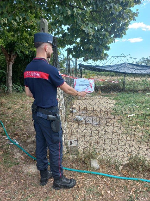 I carabinieri non sono riusciti a prelevare gli animali che risultavano aggressivi né potevano essere sedati poiché gravemente malnutriti. Gli animali sono stati sequestrati ed è stato fornito loro costantemente acqua e cibo. Inoltre per migliorare le condizioni di detenzione è stato steso dai carabinieri un telo ombreggiate e posizionato un secchio d’acqua abbondante all’interno del recinto. E’ stata inoltre prescritta una visita veterinaria urgente e la cura della ferita purulenta. Per per lasciato in queste condizioni i due animali, il responsabile rischia le pene dell’arresto fino ad un anno e ammenda fino a 10.000 euro