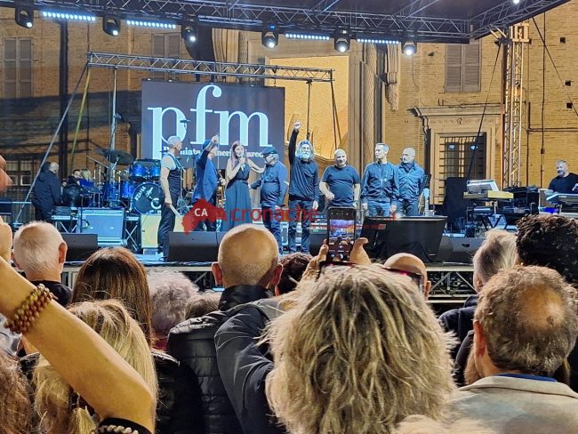 La serata ha preso il via dalle 19, con food truck e area ristorazione a ridosso di via Sisto V. La circolazione stradale intorno al centro storico è stata interrotta per permettere al pubblico di fruire pienamente di una Loreto unita nella musica. Il main stage di Piazza Giovanni XXIII ha accolto con una folla in tripudio la Premiata Forneria Marconi (Pfm), celebre band rock-progressive milanese guidata dal front-man Franz Di Cioccio che per due ore, a partire dalle 22, ha dato spettacolo sul palco con il ‘Doppia Traccia Tour’, una raccolta dei più grandi successi del gruppo cui ha fatto seguito una rassegna dei brani più significativi di Fabrizio De Andrè. Un evento nell’evento, dunque, che ha saputo emozionare e riportare nei cuori degli spettatori non più giovani l’atmosfera dei tempi d’oro, ma che sicuramente ha saputo coinvolgere anche le nuove generazioni con sonorità dal gusto moderno mai passate di moda. A scaldare il palco della Pfm il violinista Olen Cesari, che ha deliziato il pubblico con brani dal sapore eclettico e virtuosistico. Cesari ha omaggiato il Giubileo sulle note dell’Ave Maria di Schubert, passando per musiche da film come ‘Pirati dei Caraibi’ e brani virtuosistici che hanno lasciato la folla a bocca aperta.
