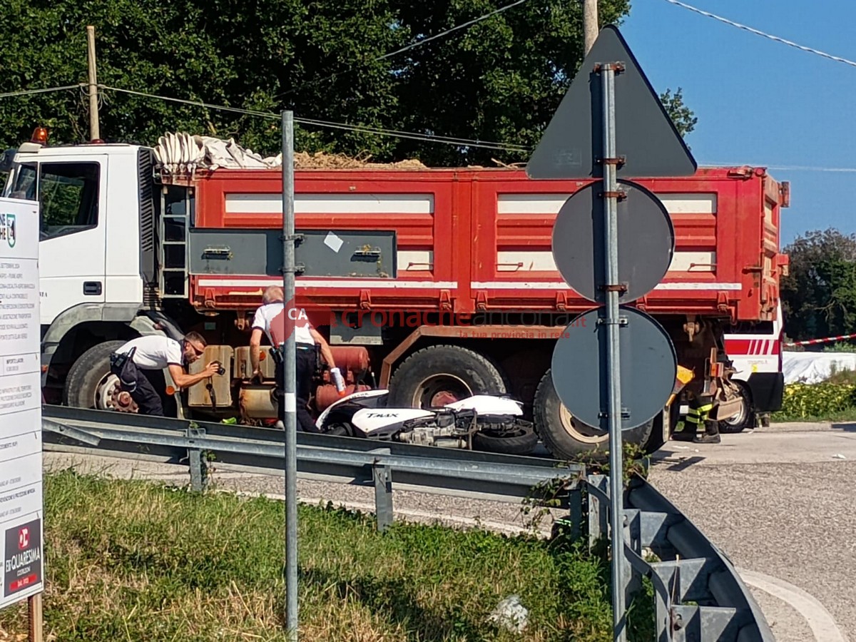 Grave incidente stradale nel pomeriggio, intorno alle 16.30, tra via delle Industrie e la Strada Provinciale 10, ad Osimo, dove uno scooter T-Max con a bordo due persone, due 25enni del posto, si è scontrato lateralmente con un camion.