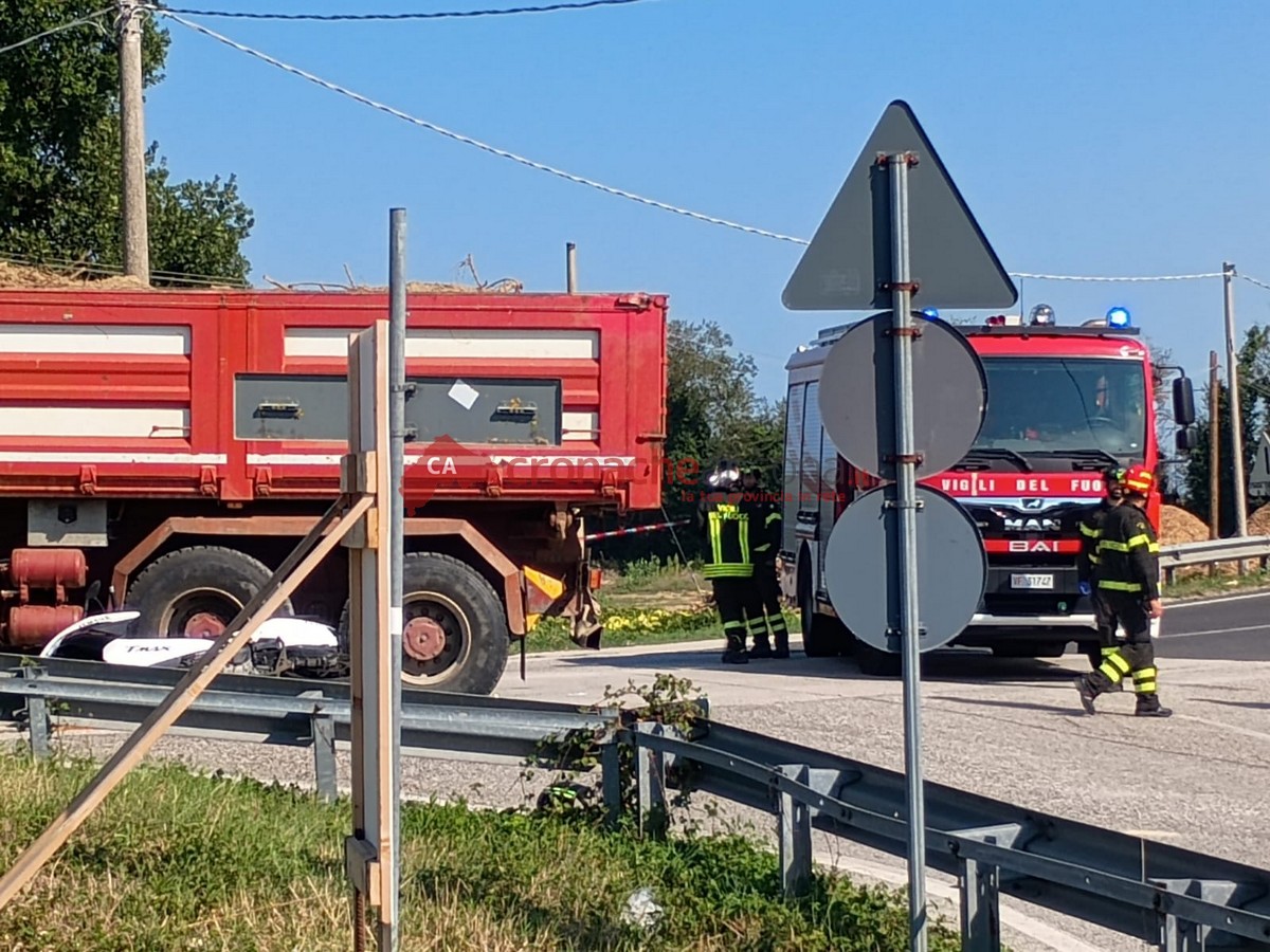Per via della dinamica dell’incidente, è stata allertata anche l’eliambulanza, poi atterrata in un campo adiacente alla strada.
