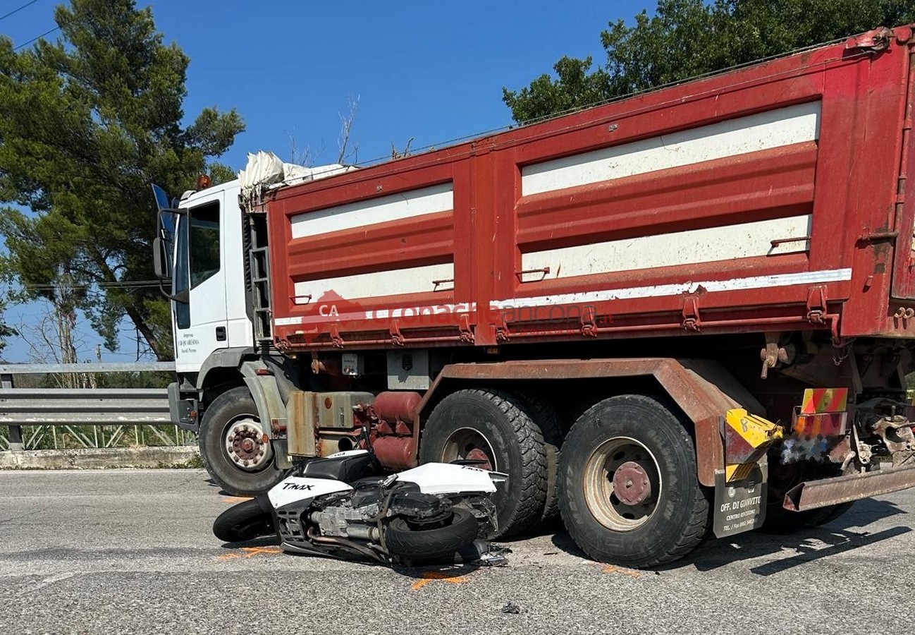 Grave incidente stradale nel pomeriggio, intorno alle 16.30, tra via delle Industrie e la Strada Provinciale 10, ad Osimo, dove uno scooter T-Max con a bordo due persone, due 25enni del posto, si è scontrato lateralmente con un camion.
