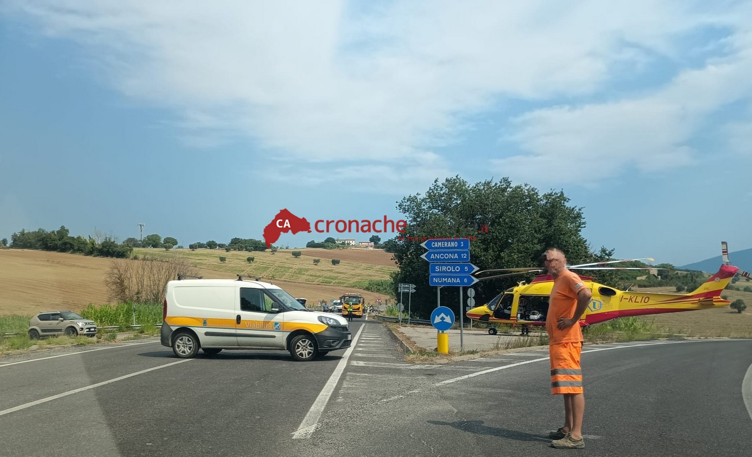 Lanciato l’allarme, la strada è stata chiusa e sul posto sono accorse due ambulanze della Croce Gialla di Camerano, l’automedica di Osimo, la Croce Rossa di Osimo e l’eliambulanza alzatasi in volo da Torrette.