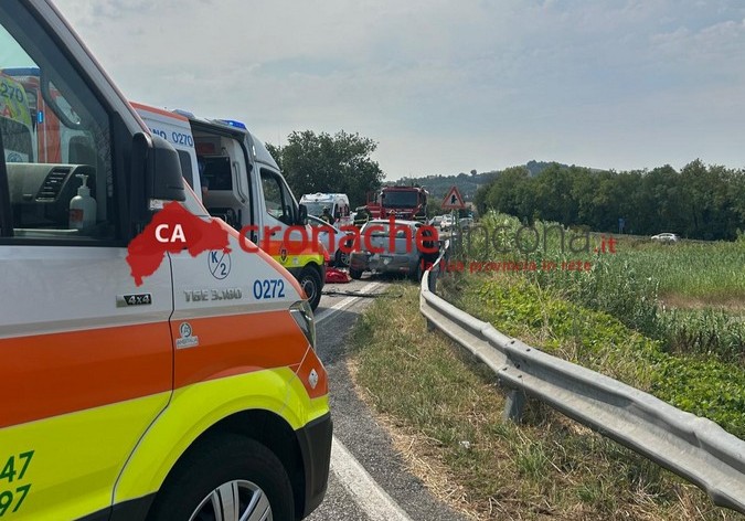 Grave incidente a metà mattinata, intorno alle 11, all’altezza dello svincolo per Sirolo, a Camerano.