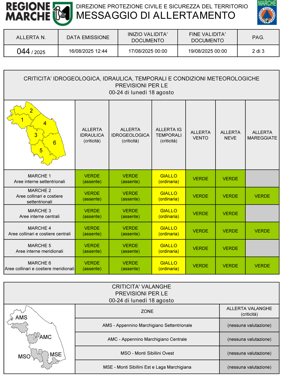 L’anticiclone Caronte e l‘alta pressione, che hanno caratterizzato il tempo nella settimana di Ferragosto, si stanno spostando verso la penisola iberica esponendo l’Italia e anche le Marche all’ingresso di aria più fresca dai Balcani. Questo favorirà fenomeni di instabilità in particolare per la giornata di lunedì anche nella nostra regione. Il Centro Funzionale – Multirischi della Regione Marche ha infatti emanato un messaggio di allertamento per temporali nelle prossime 36 ore.
