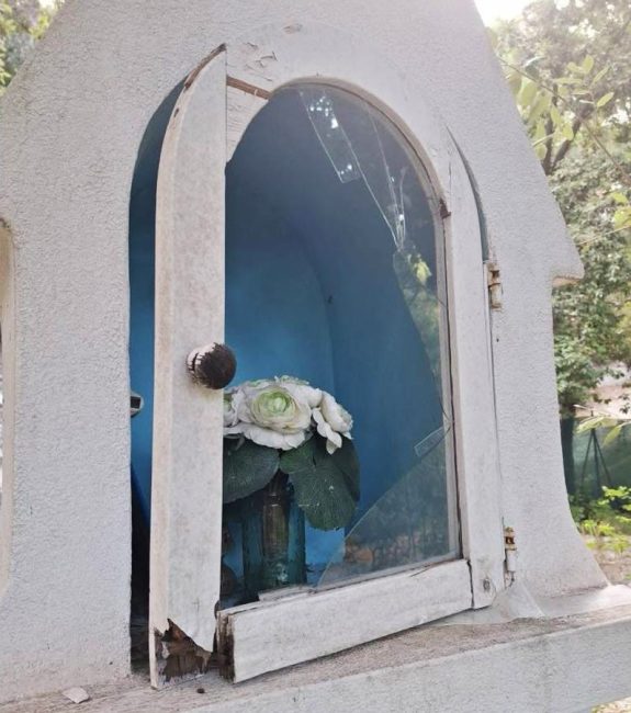 Vandali in azione lungo la strada che collega Massignano al Poggio, all’interno del Parco del Conero. La Madonnina custodita in una piccola edicola votiva è stata infatti ritrovata distrutta: la bacheca in vetro in frantumi e la statua religiosa ridotta in pezzi tra i sassi e le foglie. La denuncia è arrivata sui social, un utente ha pubblicato le foto dei resti: «Ormai il degrado è totale – ha scritto – probabilmente la Madonnina posta sulla strada dava fastidio».