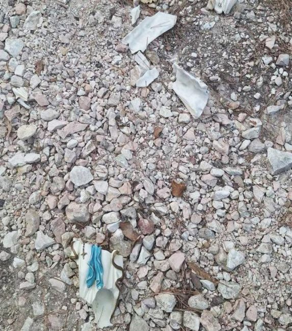 Vandali in azione lungo la strada che collega Massignano al Poggio, all’interno del Parco del Conero. La Madonnina custodita in una piccola edicola votiva è stata infatti ritrovata distrutta: la bacheca in vetro in frantumi e la statua religiosa ridotta in pezzi tra i sassi e le foglie. La denuncia è arrivata sui social, un utente ha pubblicato le foto dei resti: «Ormai il degrado è totale – ha scritto – probabilmente la Madonnina posta sulla strada dava fastidio».