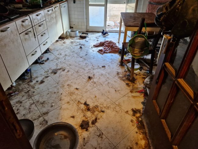 «Mentre 2 cani e i gatti erano chiusi in casa tra le loro deiezioni – prosegue l’Associazione -, quasi totalmente al buio e in completa solitudine, il terzo cane viveva da tempo all’esterno, legato a una catena, senza un riparo adeguato e in condizioni igienico-sanitarie estremamente precarie. I cani e i gatti chiusi nell’appartamento erano visibilmente agitati e trascurati, quello legato a catena era sporco, agitato e presentava anche problemi di deambulazione e di socializzazione».
