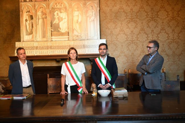 «Un viaggio straordinario sulle orme di San Francesco e San Giuseppe da Copertino, il nostro amatissimo “Santo dei voli”.- scrive Andreoni – Ad accompagnare il gruppo il sindaco di Copertino Vincenzo de Giorgi e l’assessore al turismo Francesco Trono che ho avuto il piacere di riceverli in Comune insieme all’assessore Mauro Pellegrini ai quali abbiamo portato i saluti della sindaca Michela Glorio che non è potuta intervenire. Dopo i saluti di rito in Comune, si è tenuto un significativo scambio di doni, che ha suggellato il legame profondo tra la città di Osimo e quella di Copertino, unite da una comune devozione e da valori condivisi. Una tappa fatta di spiritualità, sport e condivisione, che ha toccato il cuore della nostra comunità».