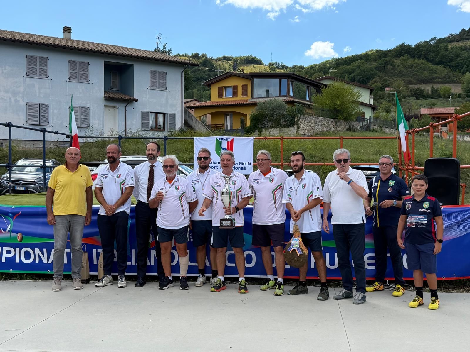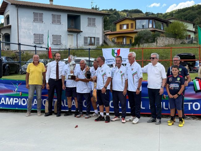 Le Marche grandi protagoniste della massima rassegna iridata del rulletto a squadre, il Campionato Italiano FiGeSt disputatosi lo scorso fine settimana a Nocera Umbra. Le formazioni delle province marchigiane, oltre a conquistare il titolo tricolore nelle categorie A e B,hanno occupato tutti i sei posti del podio. Va detto che le rappresentative di Ancona, Macerata, Fermo e Pesaro partecipavano con ben 21 formazioni su un totale di 36 al 17esimo Campionato Italiano a squadre di rulletto organizzato dalla Asd Nocera-Rigali del presidente Sandro Passeri e promosso dalla Federazione Italiana Giochi e Sport Tradizionali. Delle 36 squadre che si sono sfidate sulle piste della frazione Isola 17 erano di categoria A e 19 di categoria B.