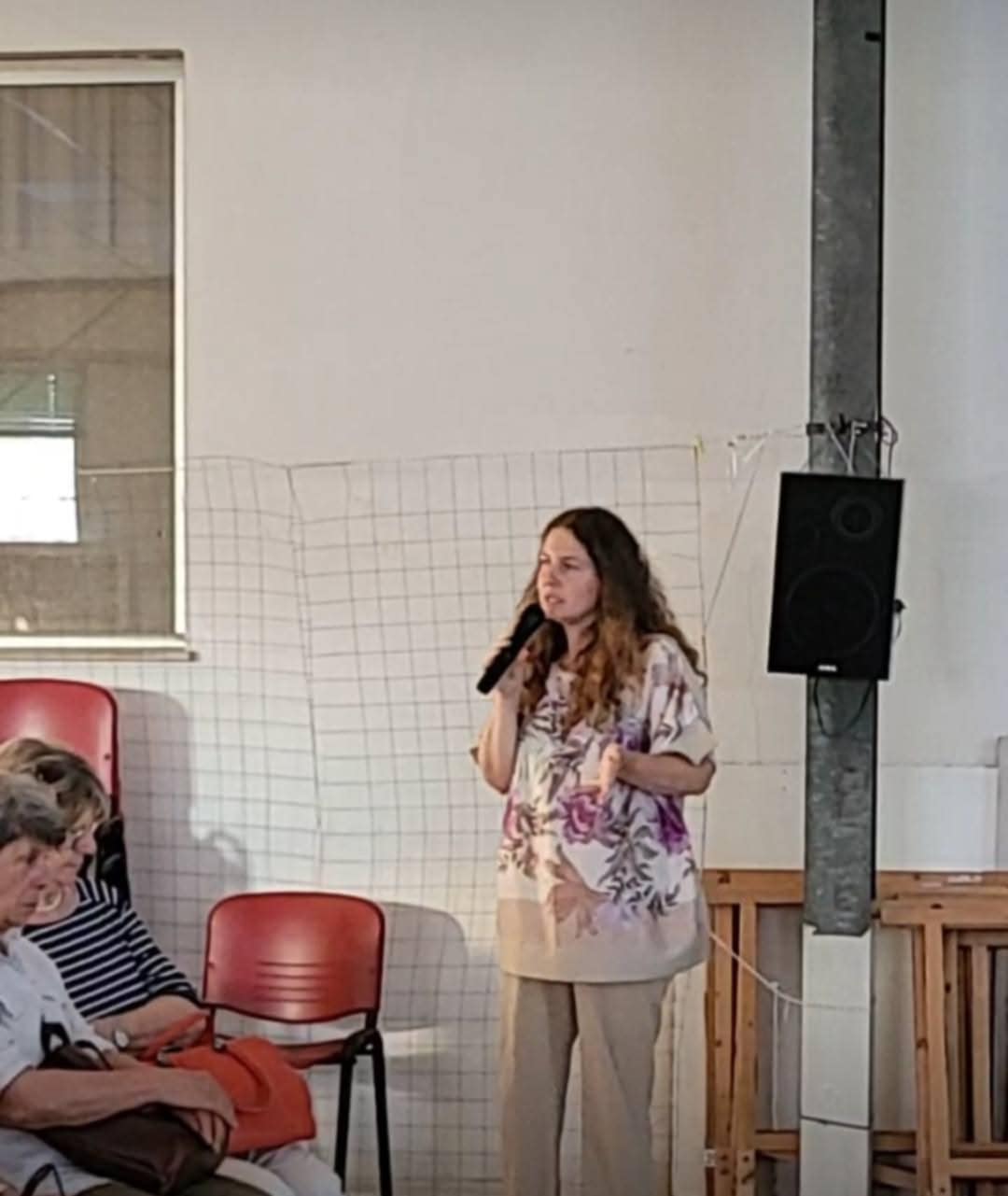 Beatrice Marinelli in una delle assemble del Comitato Aria Nostra che si btte contro il progetto del tempio crematorio d realizzare nel cimitero di Tavernelle