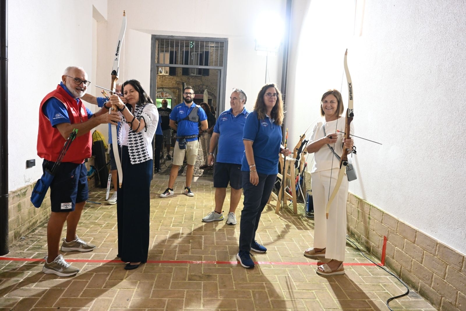 La sindaca Michela Glorio (a sin.) e la vice Paola Andreoni alla prova del tiro con l’arco
