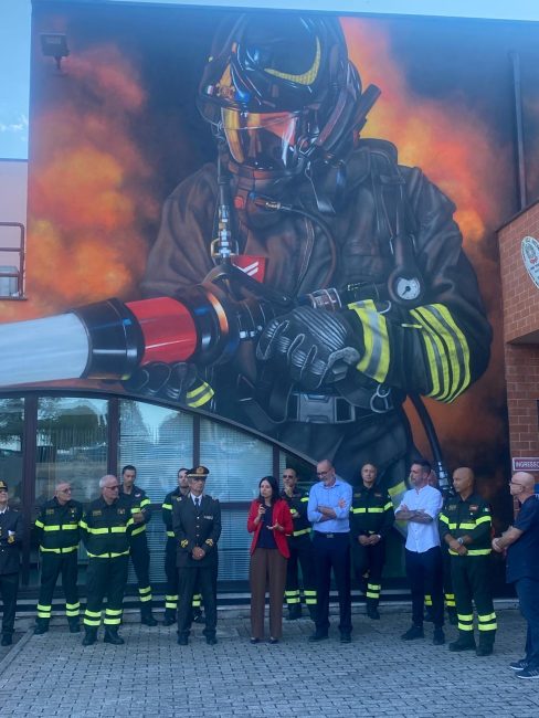 Inaugurato ieri al distaccamento di San Sabino dei vigili del fuoco di Osimo il murale creato dall’artista jesino Federico Zenobi che si intitola”Coraggio”. Al vernissage ha presenziato il comandante provinciale dei vigili del fuoco di Ancona, l’ingegnere Pierpaolo Patrizietti e anche la sindaca Michela Glorio.