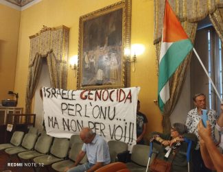 La protesta nella Sala Gialla, ieri, degli attivisti del Comitato Italia Palestina