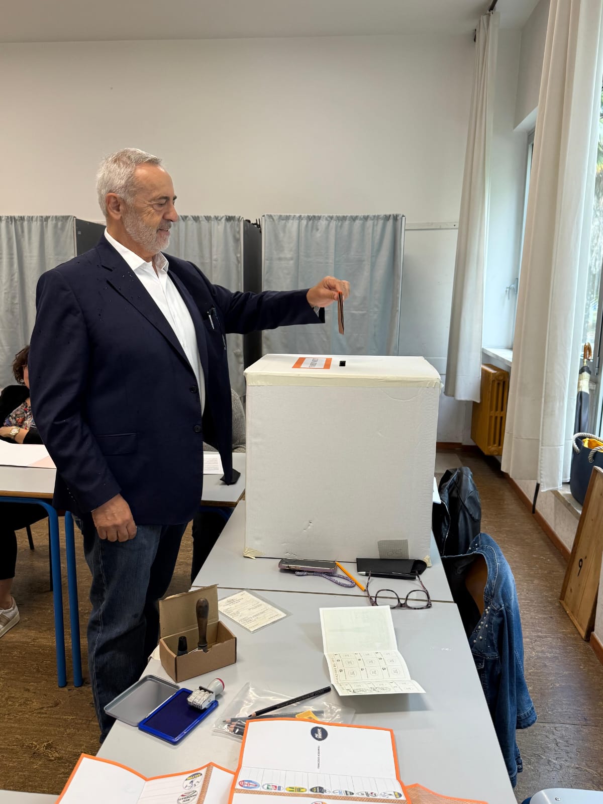 Alle ore 11:20 nel seggio della Scuola media di via Paganini 5, a Chiaravalle, ha deposto la scheda nell’urna anche Claudio Bolletta, candidato presidente di Democrazia Sovrana Popolare.