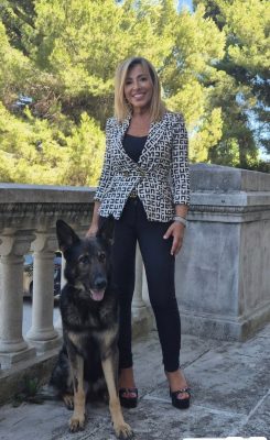 Il sindaco Stefania Signorini con il cane Billy, dell’unità cinofila della polizia locale di Falconara