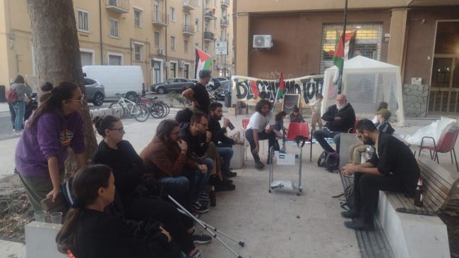 Gli appuntamenti del dopo cena prevedono invece la proiezione di film, tra cui il docufilm “Colpevoli di Palestina” sul caso giudiziario italiano che riguarda tre attivisti palestinesi, tra cui Anan Yaeesh (lunedì), l’assemblea pubblica in programma per martedì 30 settembre e uno spettacolo musicale di Francesco Coltorti in programma per mercoledì. Chiuderà la settimana di presidio una conviviale cena con piatti palestinesi. Il programma è in evoluzione e soggetto a modifiche, nonché implementazione, anche e soprattutto in relazione agli sviluppi internazionali. Inoltre, si segnala che dal presidio permanente partiranno iniziative di protesta durante le prossime imminenti giornate di sciopero, fino alla manifestazione del 4 ottobre a Roma.