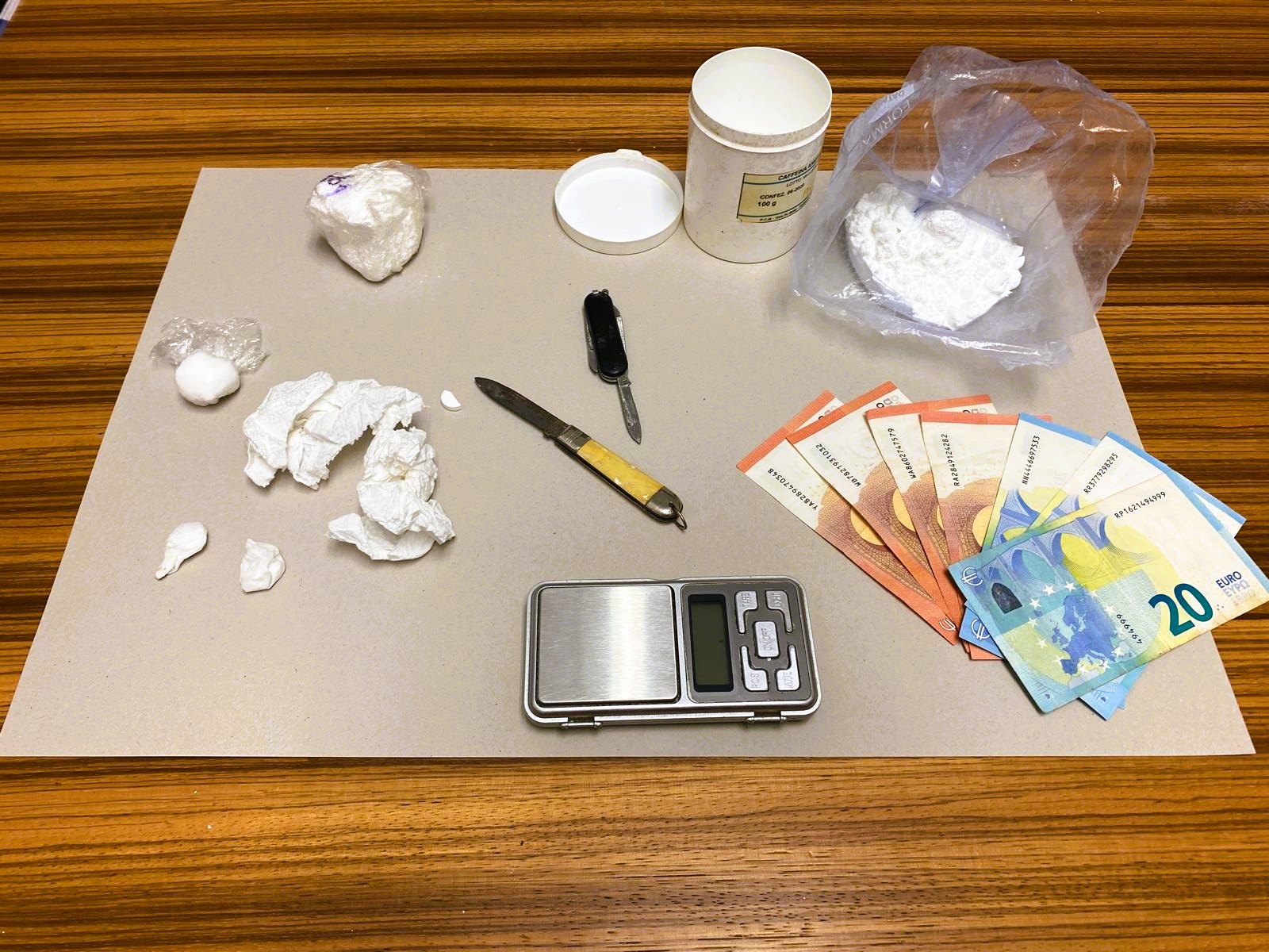 Addosso aveva due involucri di carta contenenti quasi due grammi di cocaina e del contante in banconote di piccolo taglio, che solitamente è indicatore di un’attività di piccolo spaccio al dettaglio.