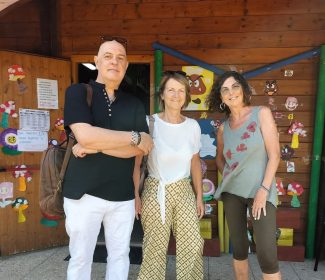 Paola Andreoni (al centro) durante una visita ai centri estivi nello scorso mese di luglio