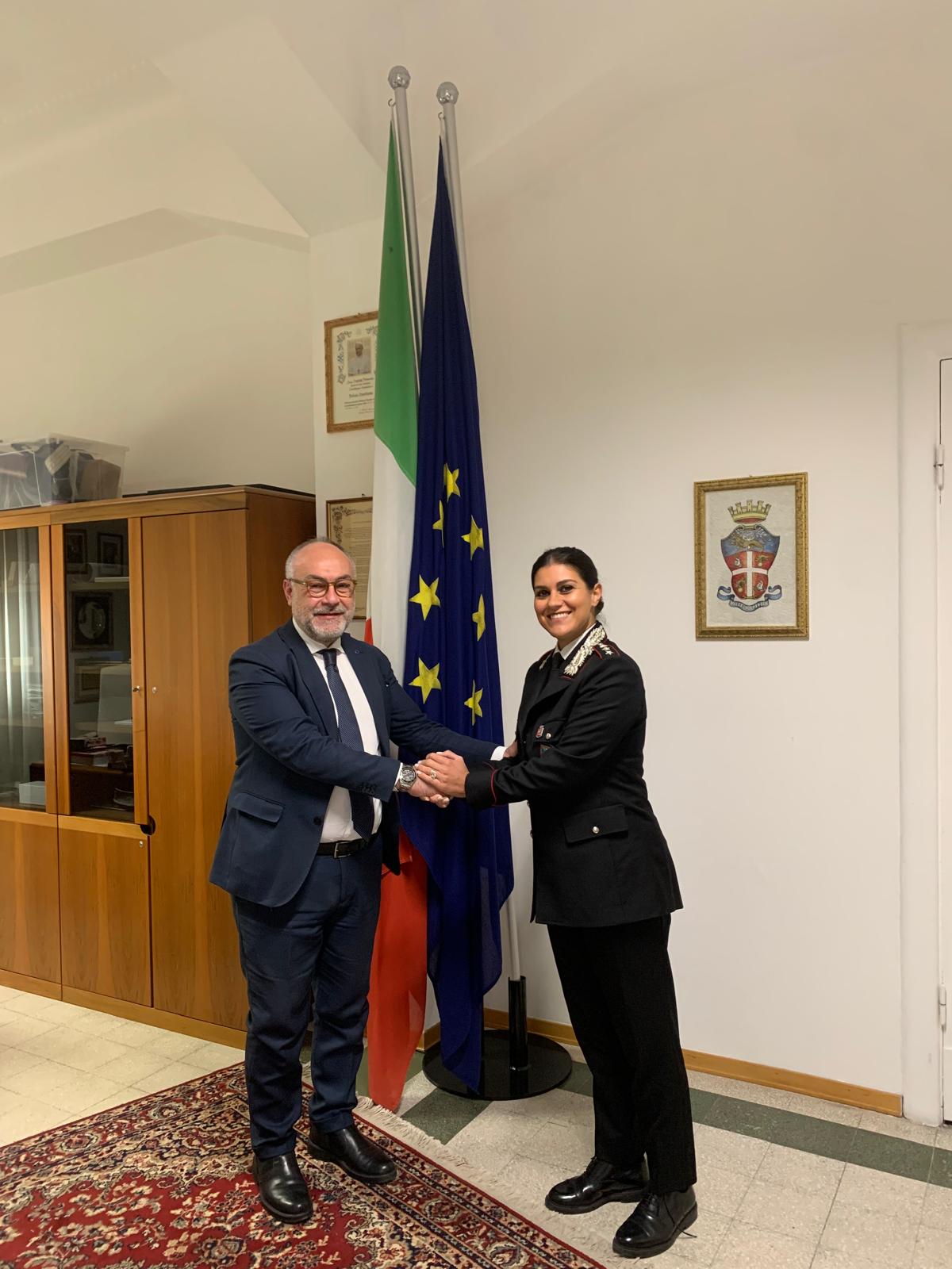 Massimo Bello con il capitano Felicia Basilicata, comandante della Compagnia dei Carabinieri