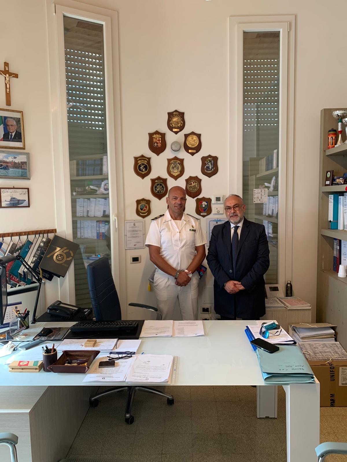 Massimo Bello con il comandante della Capitaneria di Porto di Senigallia, Salvatore Valente