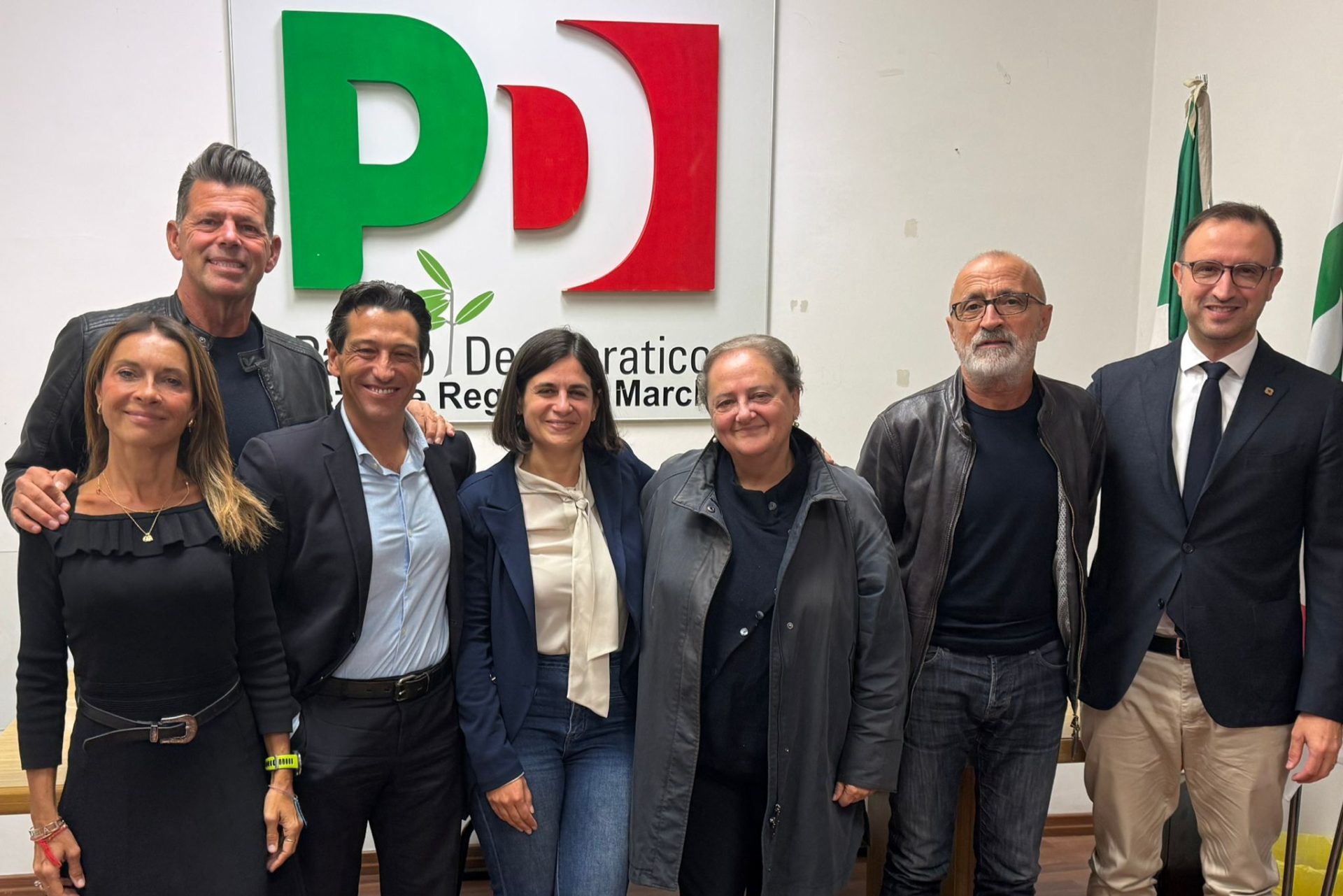 I consiglieri regionali del Pd : da sin. Micaela Vitri, Maurizio Mangialardi, Enrico Piergallini, la segretaria Chantal Bomprezzi, Valeria Mancinelli, Fabrizio Cesetti e Leonardo Catena