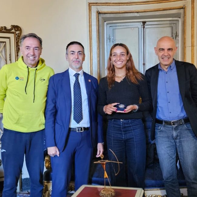 Accolta ieri a Palazzo comunale dal sindaco Lorenzo Fiordelmondo la tennista Jennifer Ruggeri. «Ho conosciuto questa tennista professionista che sta scalando il circuito Wta.- scrive sui social il primo cittadino di Jesi – Nata a Civitanova Marche, è legata a doppio filo con il nostro territorio: a soli 12 anni si è trasferita a Jesi, dove è cresciuta tennisticamente sotto la guida del maestro Massimiliano Albarella (Mta – Centro tecnico federale periferico). L’atleta, agonista fin da bambina, con Serena Williams come ispirazione, ha registrato un’impennata di risultati eccezionali, culminata con la conquista di tre titoli Itf negli ultimi due mesi, best ranking n° 370 Wta. La sua “grinta” e il suo gioco moderno sono la chiave di questa crescita costante, supportata oggi da un team di alto livello che include i coach Alice Savoretti e Paolo Ticà e il preparatore atletico Riccardo Tiranti. Con il vice sindaco Samuele Animali ci siamo congratulati per i successi raggiunti e le augurano una carriera brillante».
