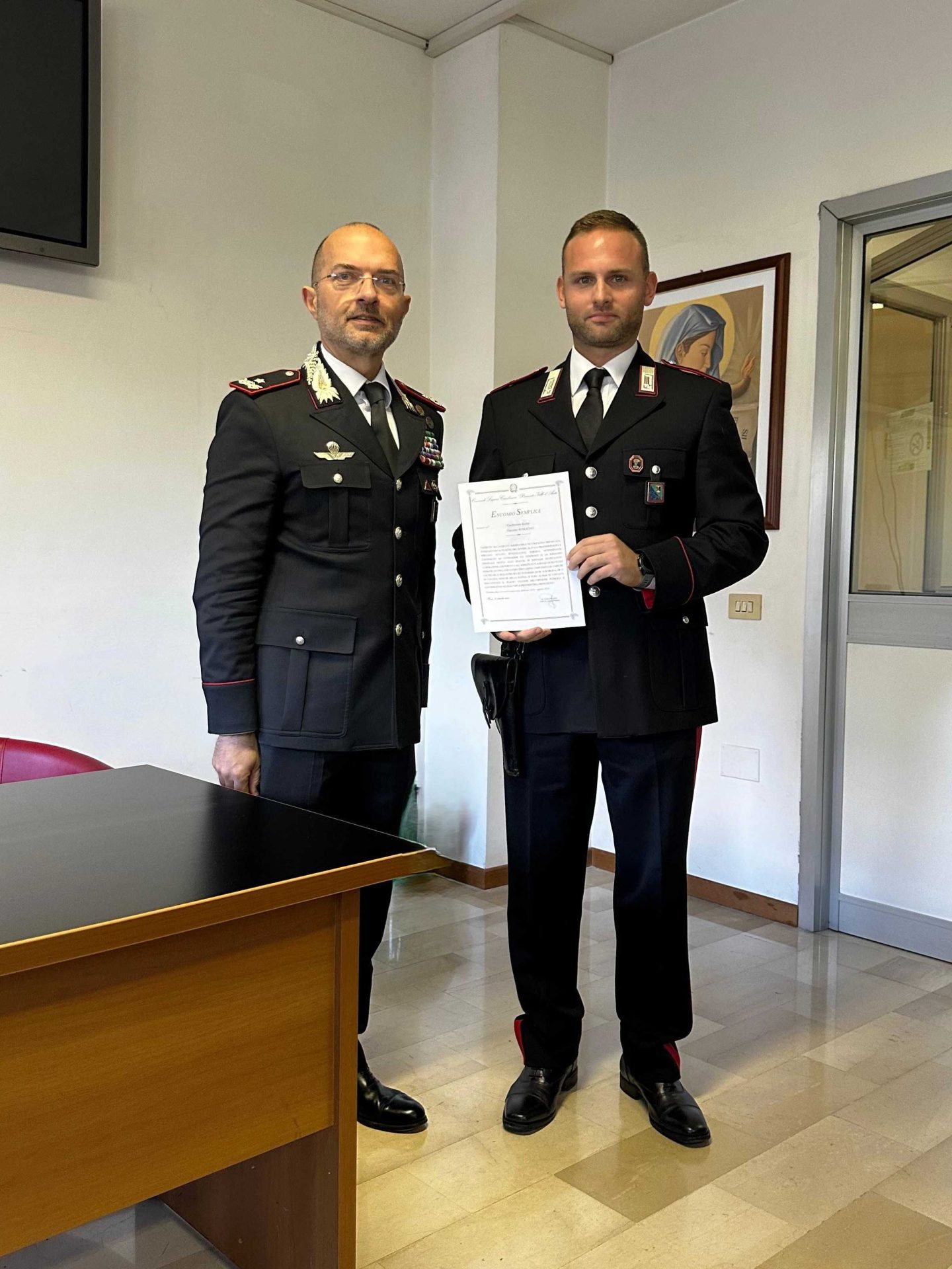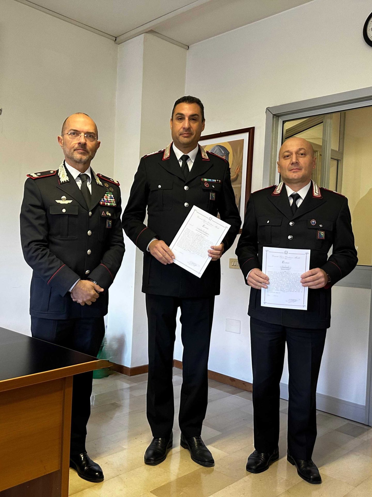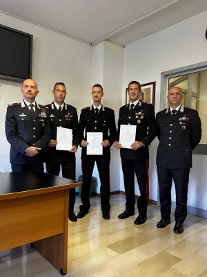 Un elogio è stato conferito al Luogotenente Carica Speciale Antonio Saracino e al Luogotenente Simone Conti, Comandante e Vice della Stazione di Ancona Principale, per l’opera meritoria resa a favore della cittadinanza e per le tante indagini svolte per reati particolarmente diffusi e perniciosi, come le truffe ai danni delle persone particolarmente fragili.