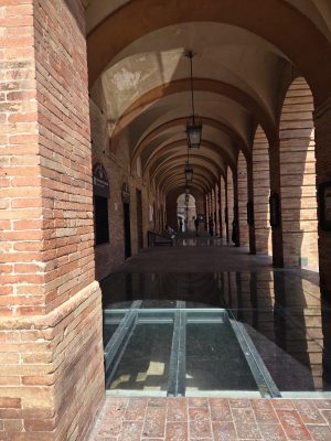 La pavimentazione vetrata con i reperti archeologici sotto il loggiato comunale di Osimo (archivio) Progetto ivico Osimo 2030 segnala la ricomaprsa di goccie di condensa dopo i lavori della scorsa estate