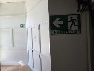 I cartelli sono comparsi adesso con un percorso indicato, che termina ancora su una porta che si apre verso l’interno. Non va bene, come evidenziato dagli stessi carabinieri durante l’ispezione e successivamente nel verbale.