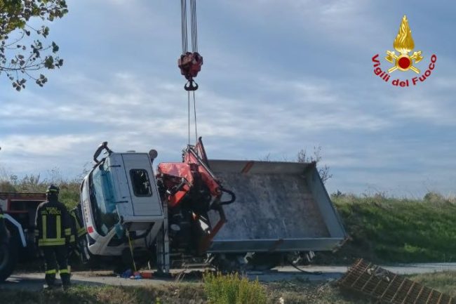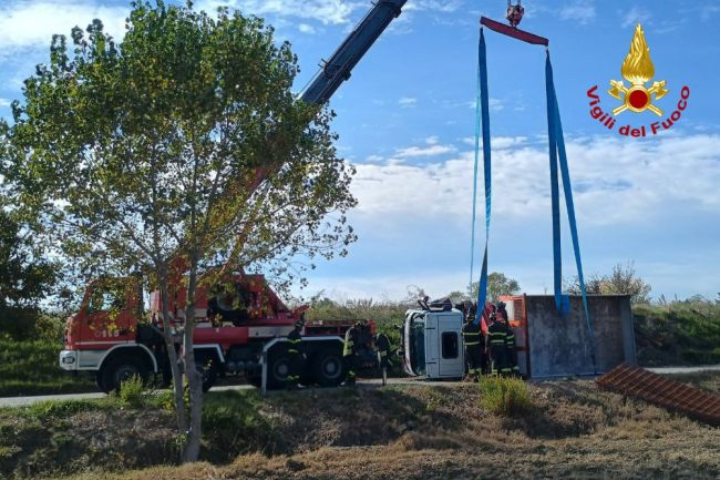 La squadra dei vigili del fuoco di Ancona, intervenuta anche con l’autogru, ha quindi provveduto al recupero del veicolo, rimettendolo sulle proprie ruote.