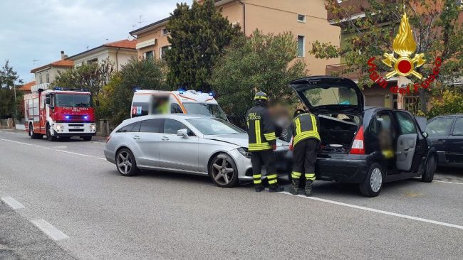 Intervento dei vigili del fuoco in via Podesti, lungo la Statale 16, per un incidente stradale che ha coinvolto due autovetture.