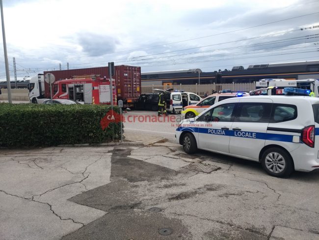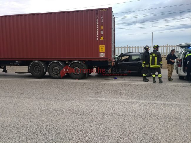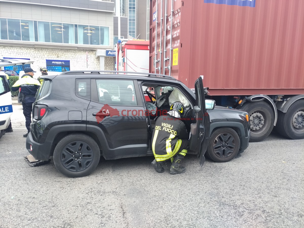 L’impatto è stato molto violento tanto che il veicolo è finito in parte sotto al mezzo pesante.