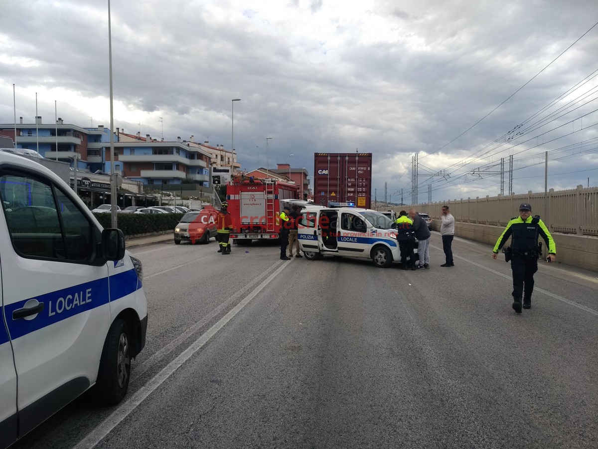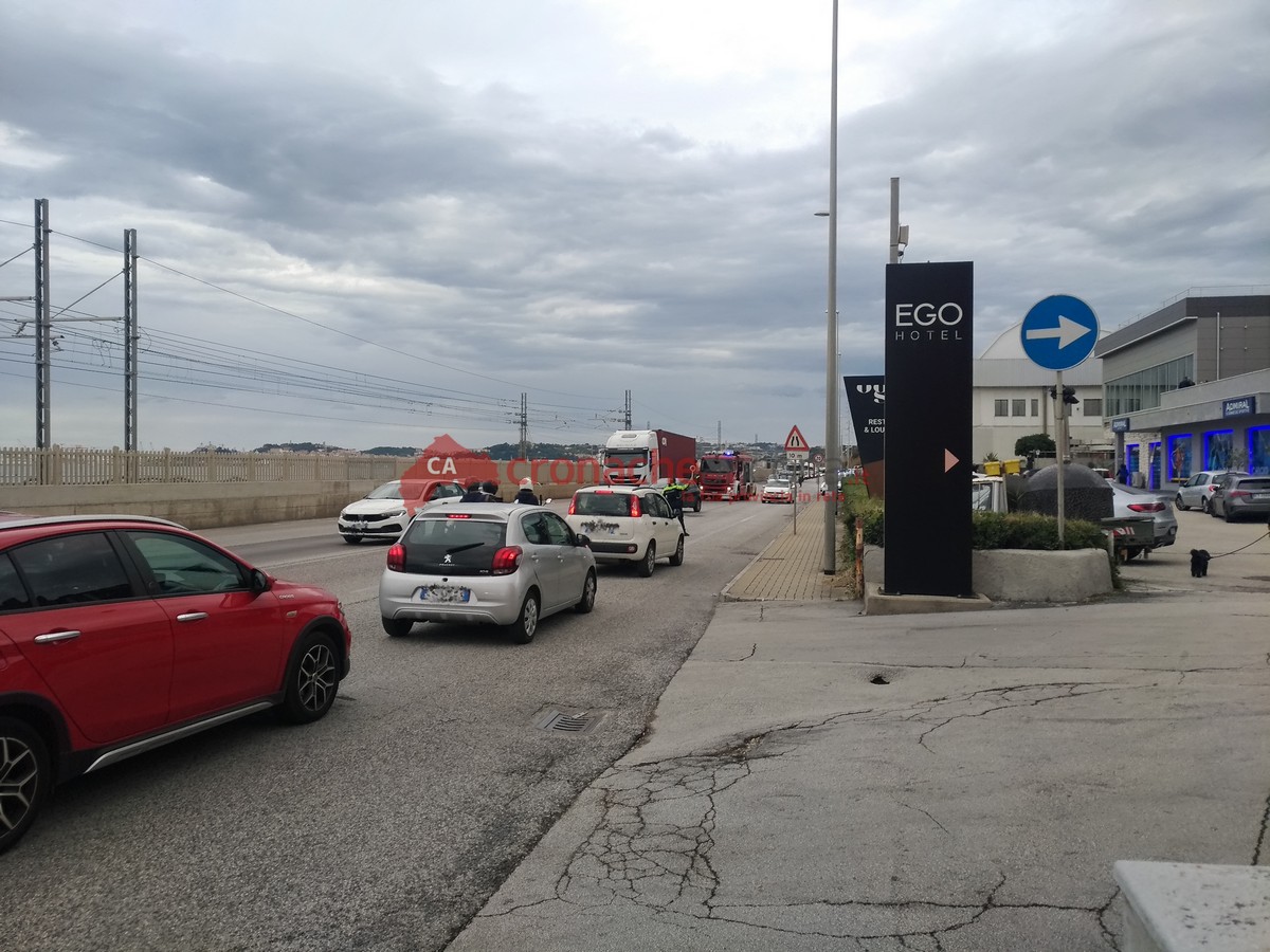 Flaminia bloccata a seguito di un incidente avvenuto intorno alle 14.45, all’altezza dell’Ego Hotel, lungo la corsia in direzione Falconara.