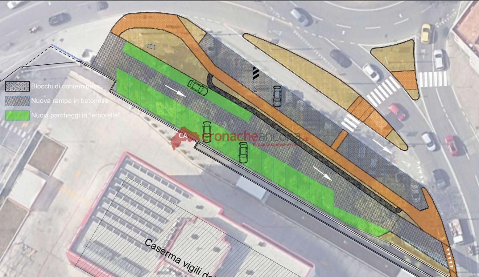 ANCONA - L'intervento, vicino al Comando dei vigili del fuoco, mira a decongestionare il traffico urbano e a migliorare la sosta. Costo stimato dell'opera: 140mila euro