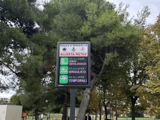 Ripristinato il pannello della protezione civile al Parco della Pace, in funzione insieme agli altri.
