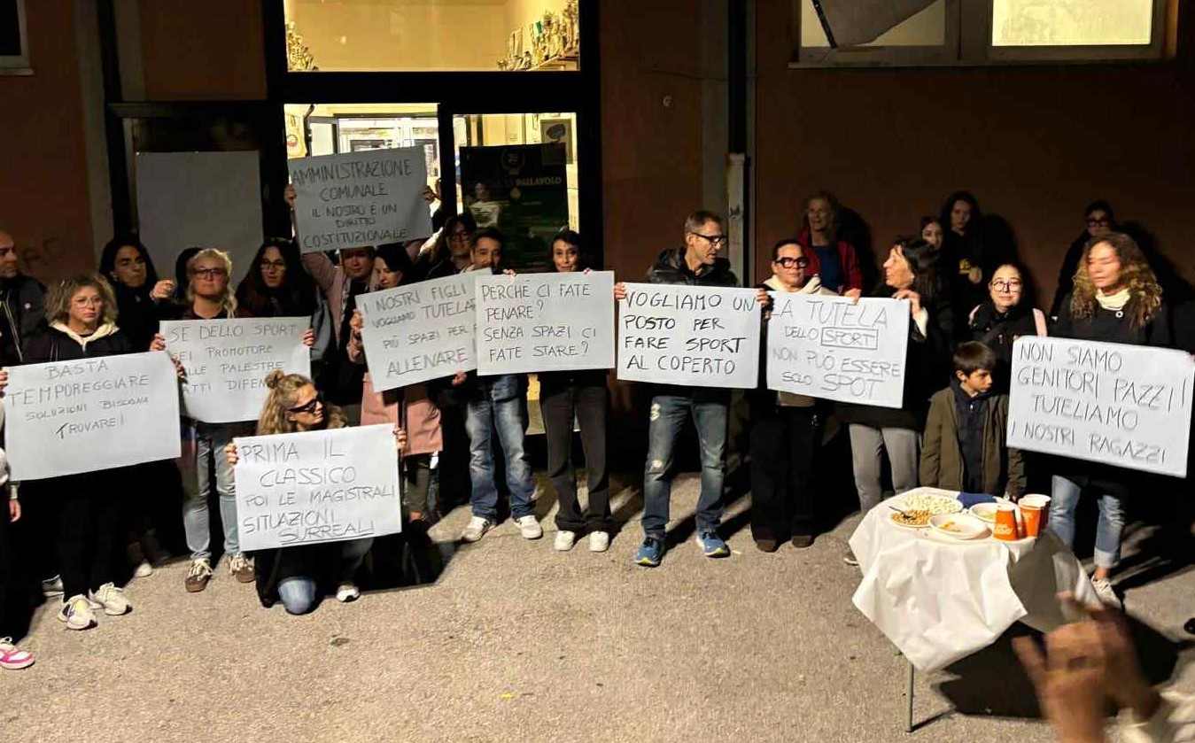 Flash Mob dei genitori nel tardo pomeriggio davanti al Palazzetto di via Campo Boario a Senigallia per sensibilizzare sulle condizioni delle palestre, tra impianti chiusi o non adeguati alle esigenze dei numerosi giovani che scelgono lo sport anche oltre l’ambito scolastico.