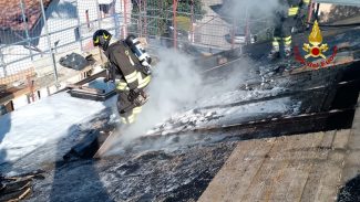 Intervento in via Mameli a Fabriano per l’incendio del tetto in legno ventilato di un’abitazione di nuova costruzione.