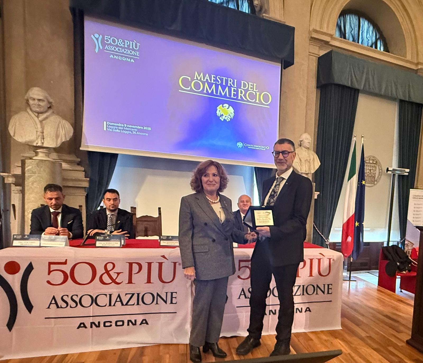Una mattinata di emozione e gratitudine quella vissuta ieri alla Loggia dei Mercanti di Ancona, dove la 50&Più e Confcommercio ha celebrato i Maestri del Commercio, premiando gli imprenditori che da 25, 40 e 50 anni portano avanti con passione e dedizione la loro attività.