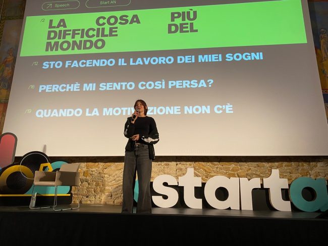 La platea ha potuto ascoltare diverse testimonianze di successo: dal pluricampione di ginnastica artistica Tommaso Brugnami alla content creator anconetana Olimpia Peroni, fino all’esperienza di impresa inclusiva del biscottificio Frolla e gli interventi del cantante Lorenzo Baglioni e della ballerina Sofia Cagnetti.