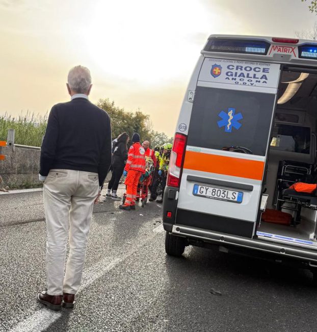 Tra i mezzi incolonnati che hanno bloccato la carreggiata uno dei due feriti , quello in condizioni parse più gravi ai primi soccorritori, è stato trasferito in tempi record all’ospedale di Ancona in eliambulanza. L’elicottero si è alzato in volo dalla piattaforma dell’ospedale regionale.
