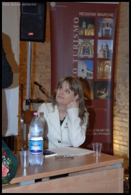 Tiziana Marfisi alla presentazione di un suo romanzo nella sala convegni delle Grotte del Cantinone a Osimo