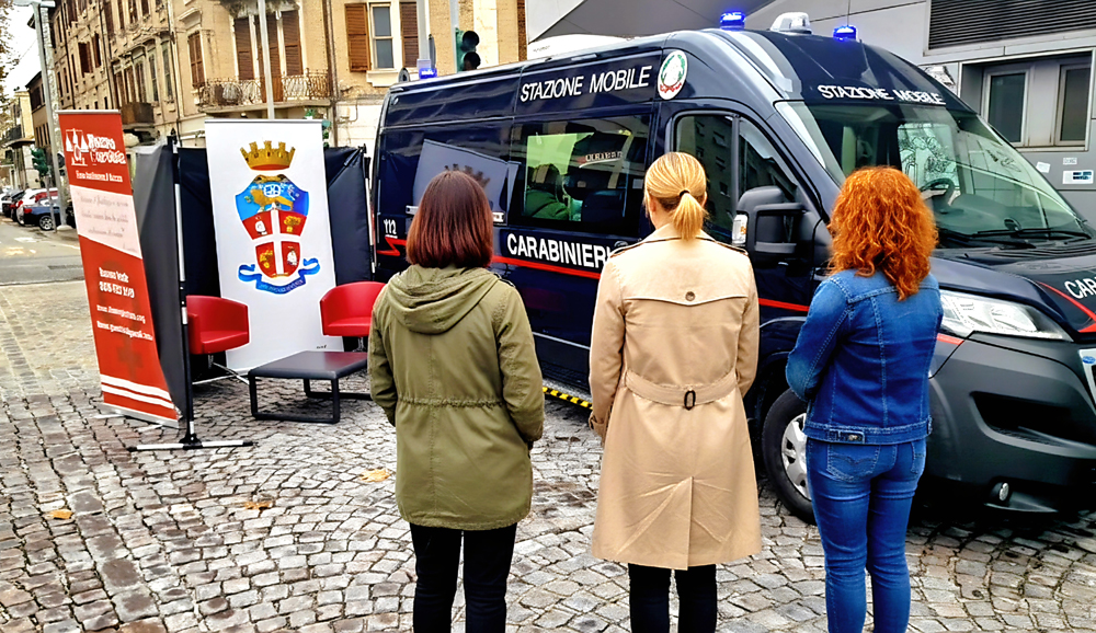 Questa mattina i carabinieri del Comando Provinciale di Ancona hanno allestito in Piazza Ugo Bassi un infopoint contro la violenza sulle donne, assistiti dalle volontarie dell’Associazione “Donne e Giustizia”. L’iniziativa, che già l’anno scorso era stata svolta in Piazza Roma, anche quest’anno vuole contribuire a diffondere un concreto segnale di presenza dell’Arma tra la gente, portando idealmente in strada la caserma dei carabinieri, quale luogo sicuro ove confidarsi sulla propria condizione di soggezione agli abusi e trovare una via per uscirne definitivamente. La Stazione Mobile collocata nei pressi del terminal dei bus è divenuta così un ufficio, al riparo dalle intemperie e dagli sguardi, al cui interno sono state accolte dai militari le persone che necessitavano di supporto o anche di un semplice consiglio. Il tutto impreziosito dalla presenza delle volontarie del centro antiviolenza provinciale ‘Donne e Giustizia’, che hanno potuto illustrare il percorso di cura, consulenza e assistenza che la struttura offre nei confronti delle persone in difficoltà.